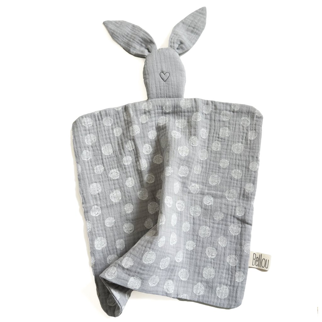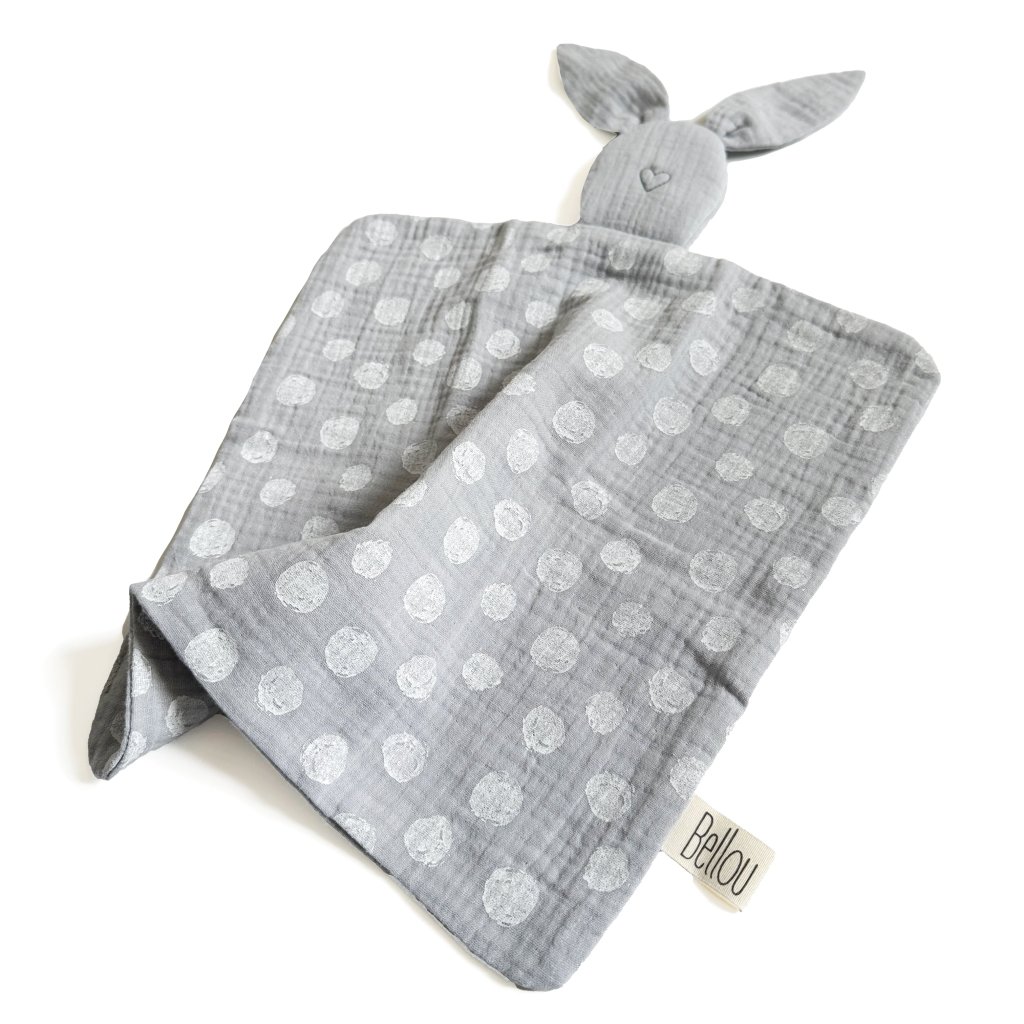 Das Schmusetuch besteht aus 100 % Bio-Baumwoll-Musselin, der besonders weich, atmungsaktiv und sanft zur empfindlichen Babyhaut ist.