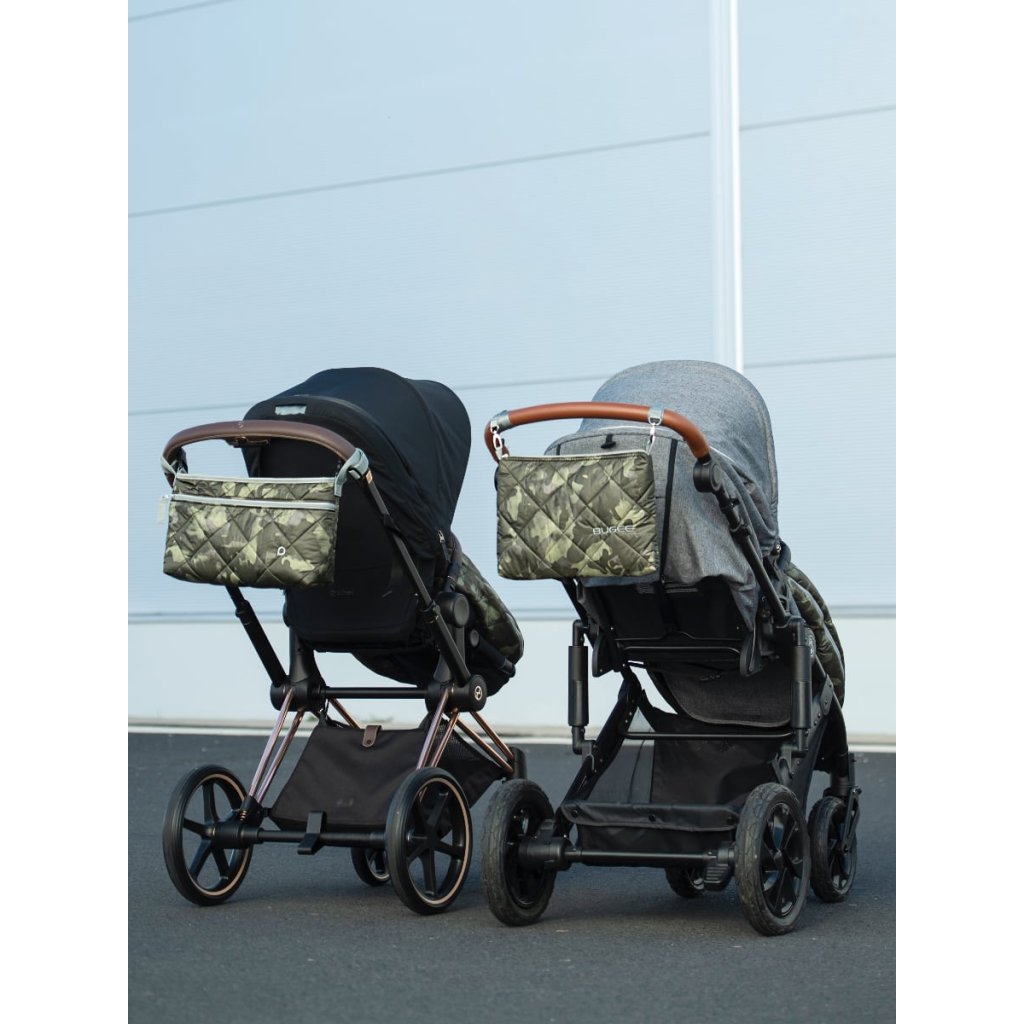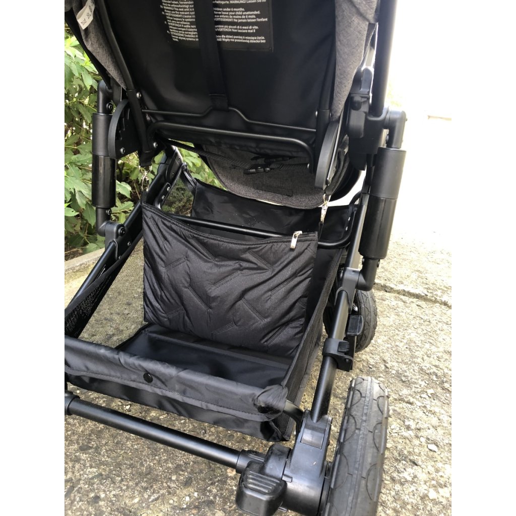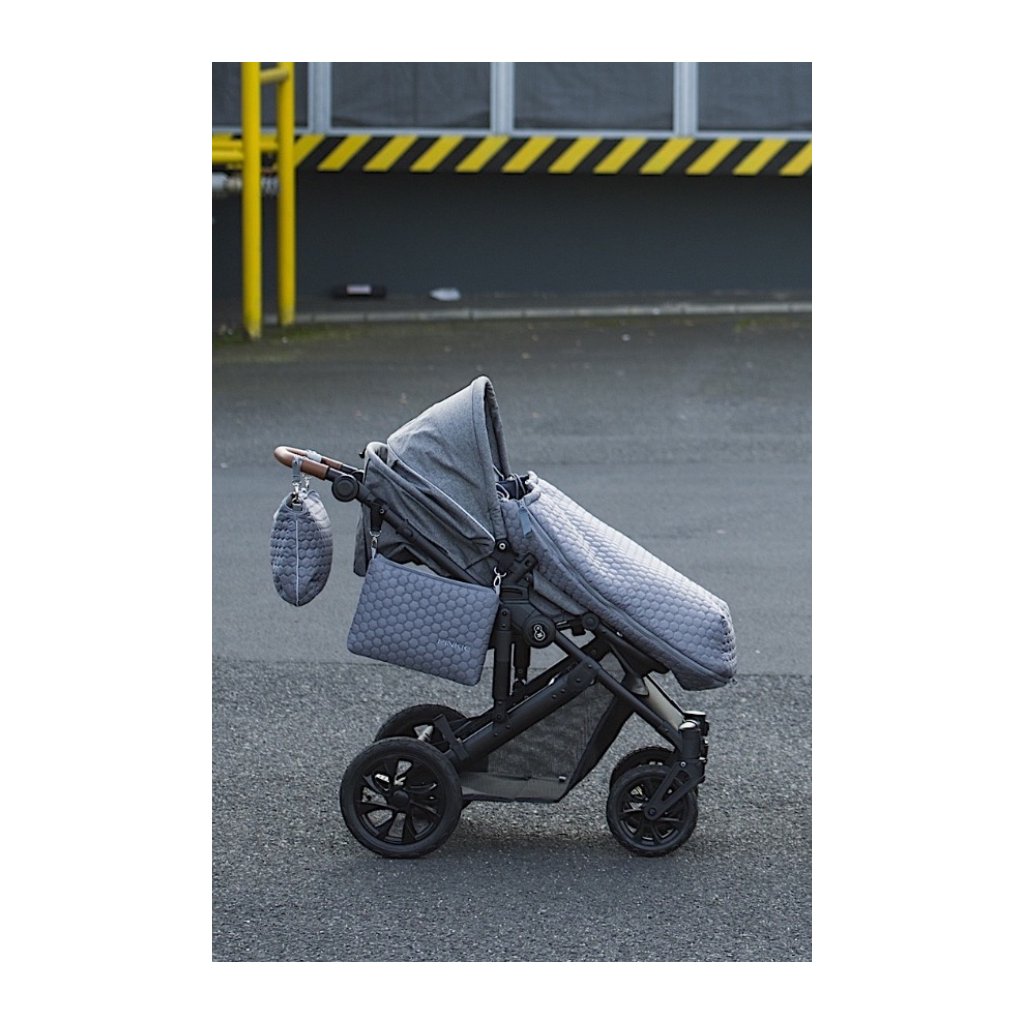 Diese Tasche hat am Rand Halteschlaufen, mit Karabiner (separat erhältlich) kann man sie somit sehr gut überall am Kinderwagen befestigen und alles parat haben.