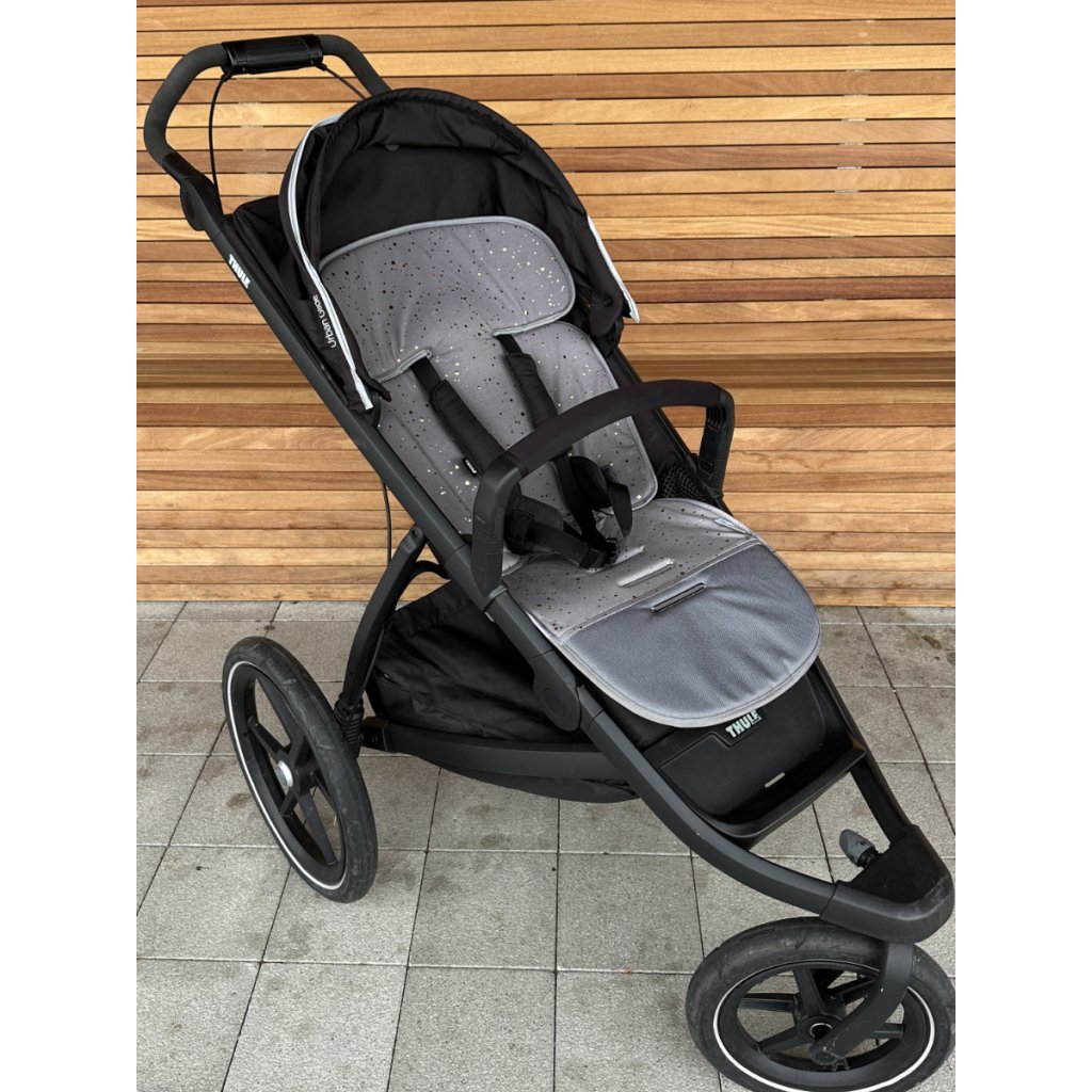 Anpassungsfähige beidseitige Sitzeinlage für den Kinderwagen.