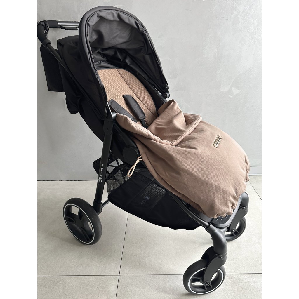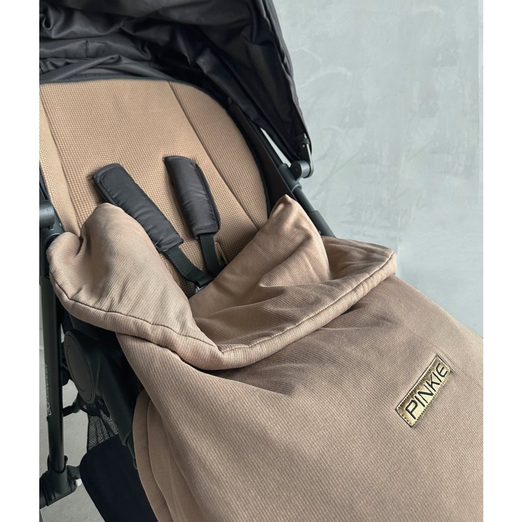 Decke für Kinderwagen, die ganz einfach durch zusammenziehen der eingenähten Schnurr unten, zu einer Beindecke umgewandelt werden kann. Die Decke hält dann schön um die Füße.