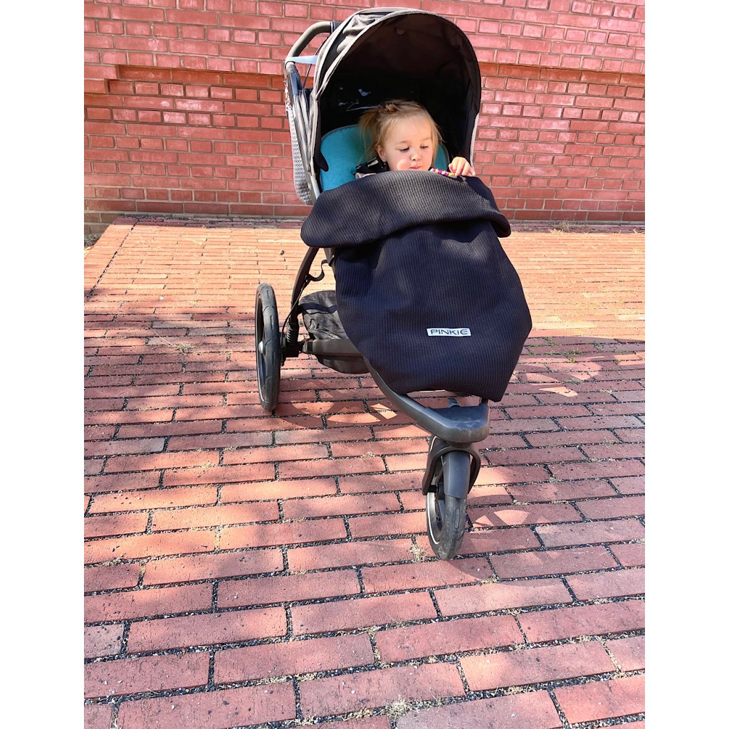 Deka ke kočárku, kterou můžete ve spodní části stáhnout a tím jí použít jako nánožník. Deka tím bude u nožiček děťátka hezky držet.