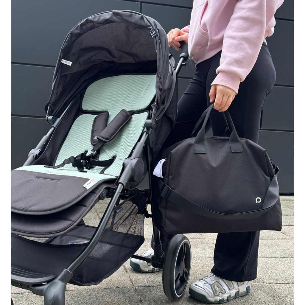 - babakocsira rögzíthető, a táska szélén felvarrt hurkok - karabinerrel könnyen rögzíthetők (nem tartozék)