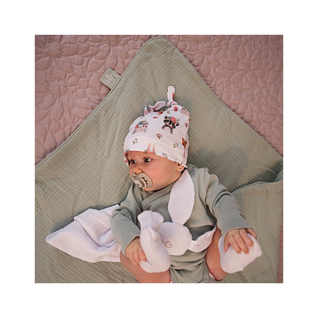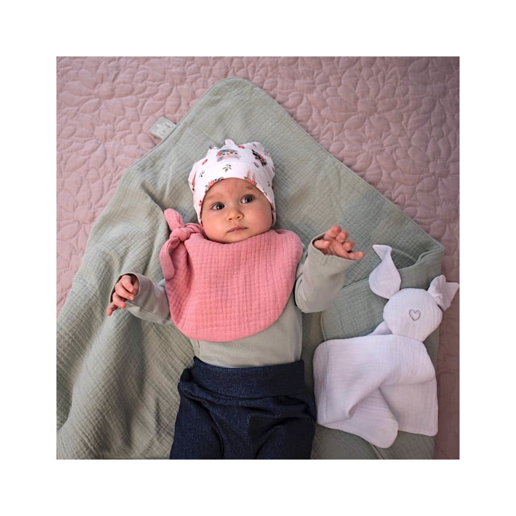 A természetes muszlin jó nedvszívó képességű, és minden mosással egyre puhábbá és kellemesebbé válik – tökéletes ölelgetéshez és nyugodt alváshoz.