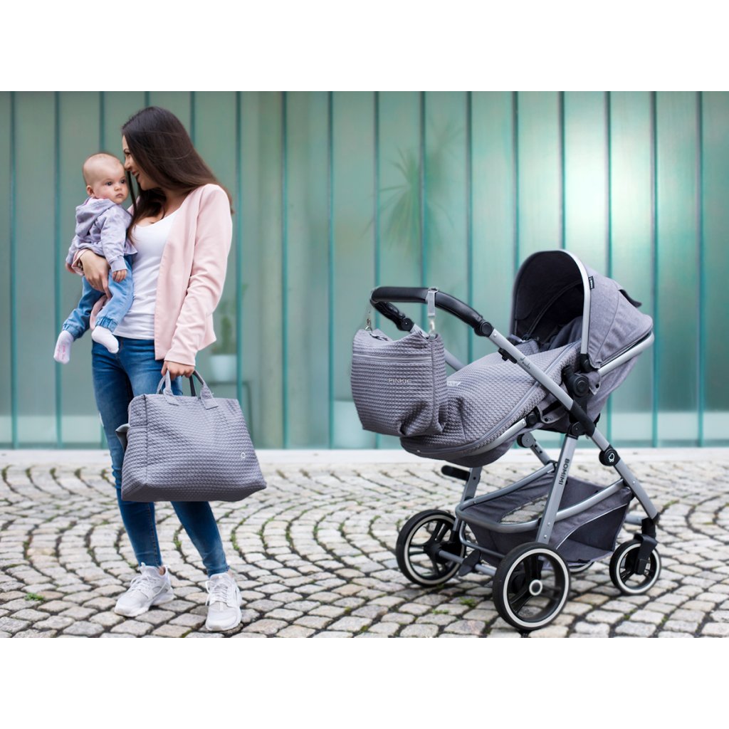 Small Grey Comb rendező táska babakocsira elülső zsebbel- XXL