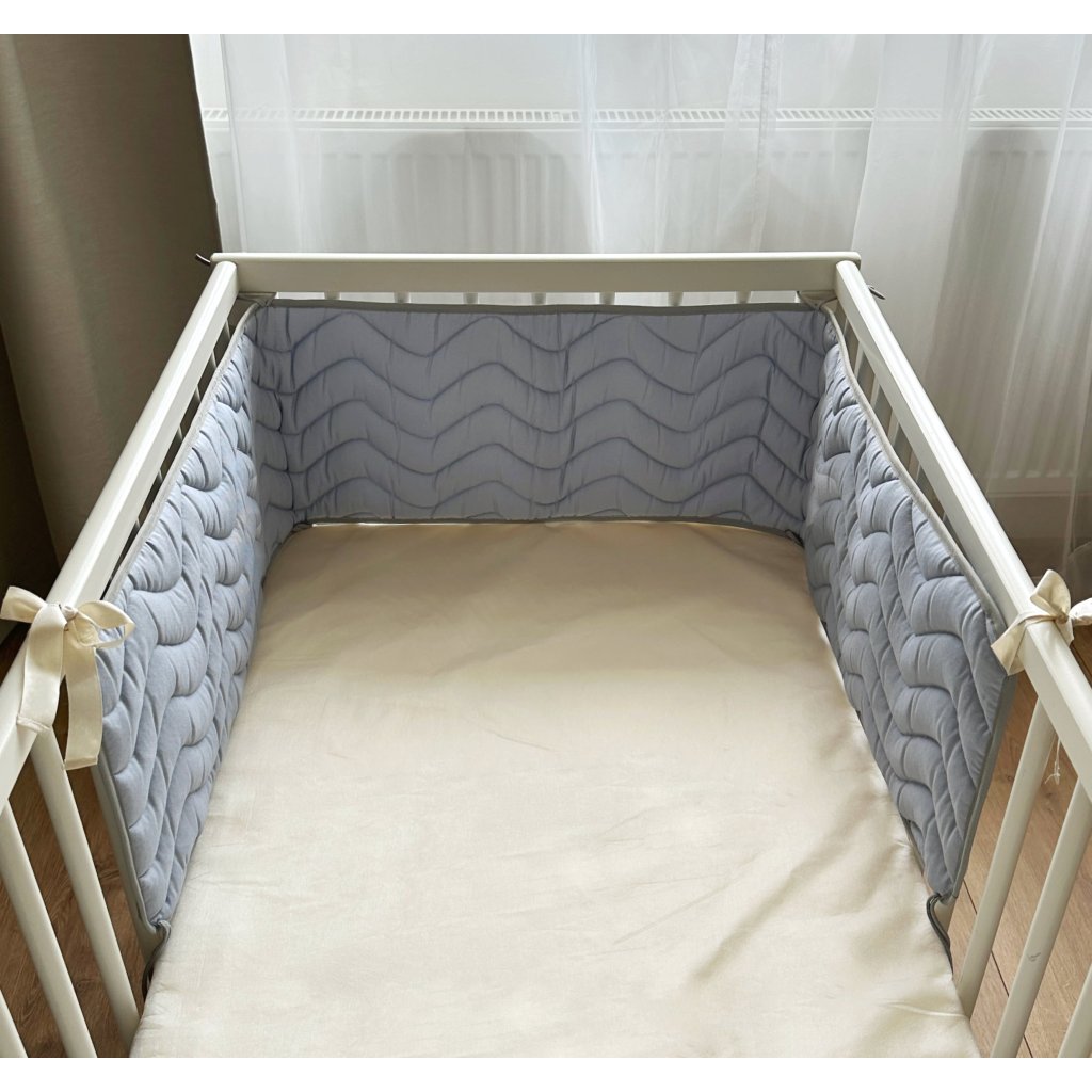 Biztosítson kisbabájának biztonságos és meghitt alvókörnyezetet ezzel a BIO pamutból készült, steppelt rácsvédővel. Puha tapintású, kíméletes az érzékeny bababőrhöz, és stílusos kiegészítője a babaágyának.