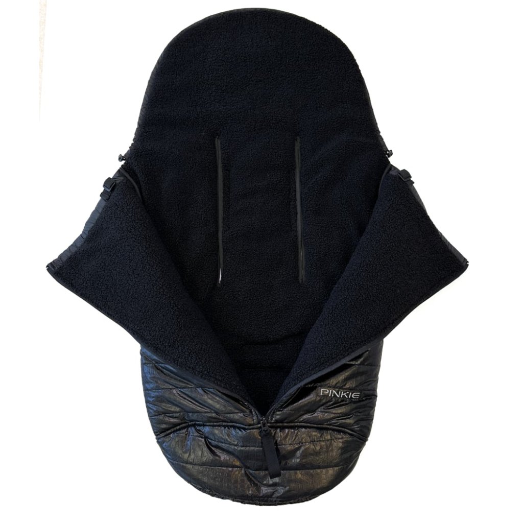 - A bundazsák felső részére madzagok vannak varrva, amelyekkel a babakocsira rögzítheti azt –így nem csúszik le a babakocsiról..