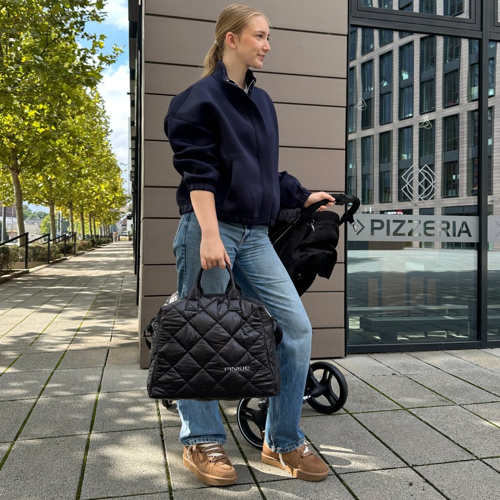 Pokud budete tašku používat ke kočárku, doporučujeme objednat také karabinky na připevnění, nejsou součástí tašky: https://www.pinkieshop.eu/uchyty-karabiny-na-tasku-ke-kocarku/