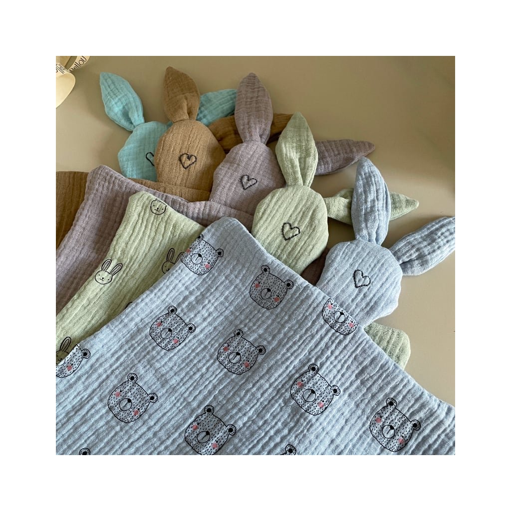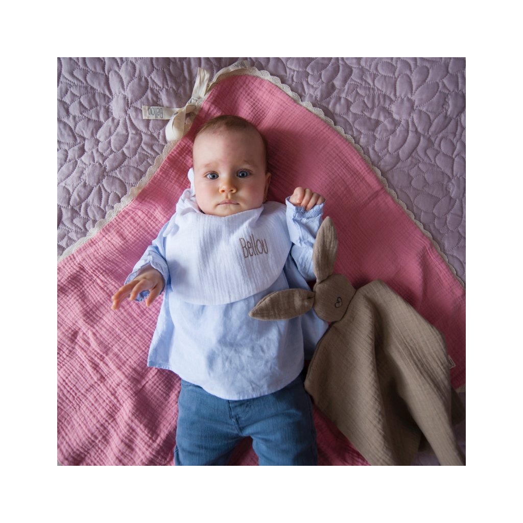 Muchláček je vyroben z 100% bio bavlněného mušelínu, který je mimořádně jemný, prodyšný a šetrný k citlivé dětské pokožce.