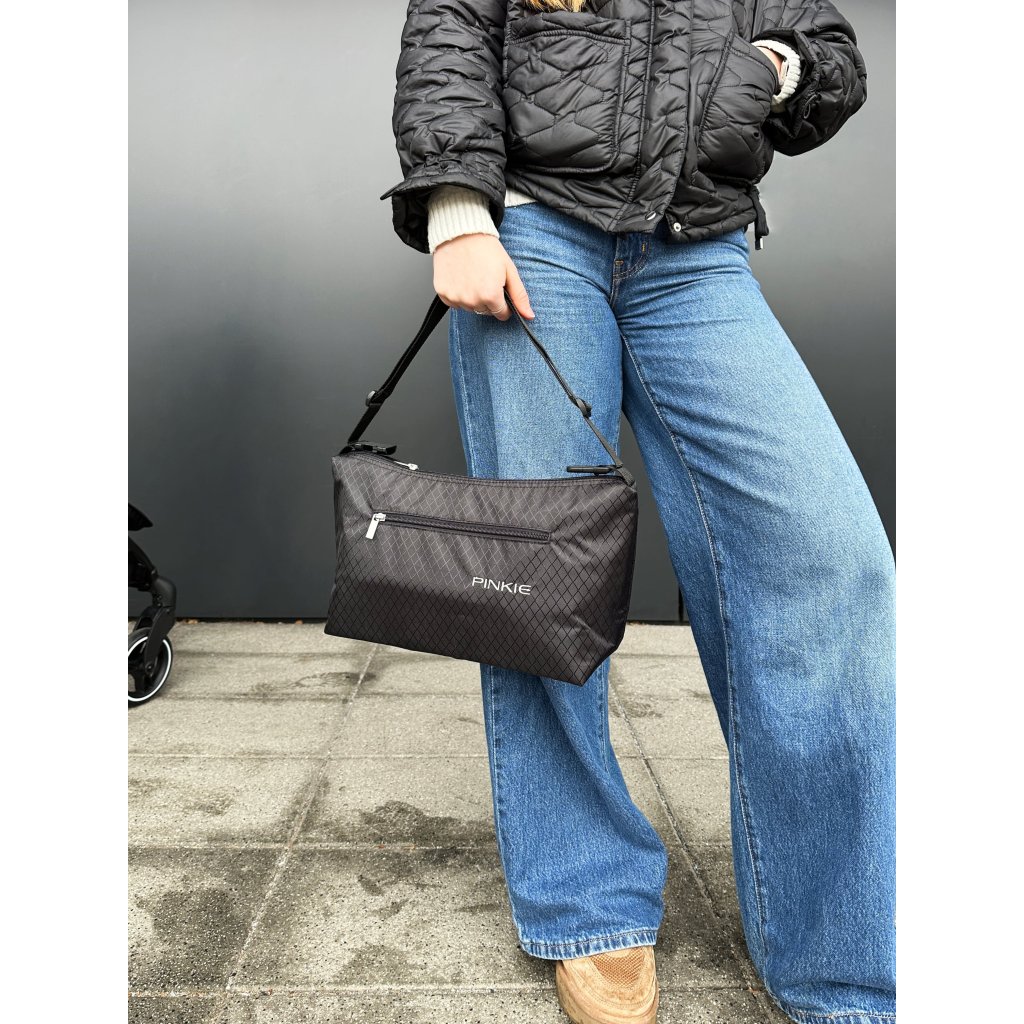 - Uvnitř je kapsička na drobnosti a tři očka z gumy, kam snadno a bezpečně můžete postavit lahvičku s pitím.