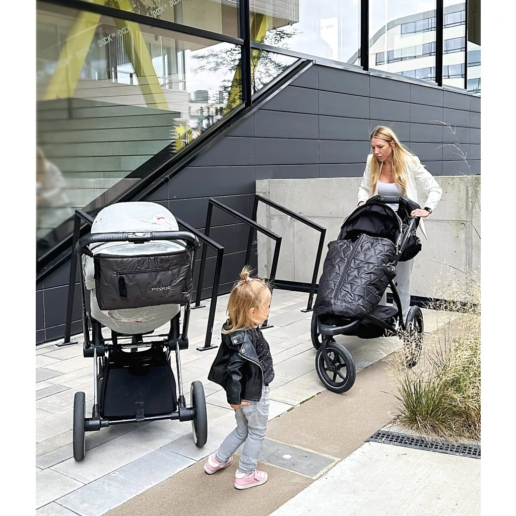 Díky regulovatelným popruhům organizér snadno připevníte na kočárek. Popruhy lze sepnout a nosit organizér i přes rameno jako tašku.