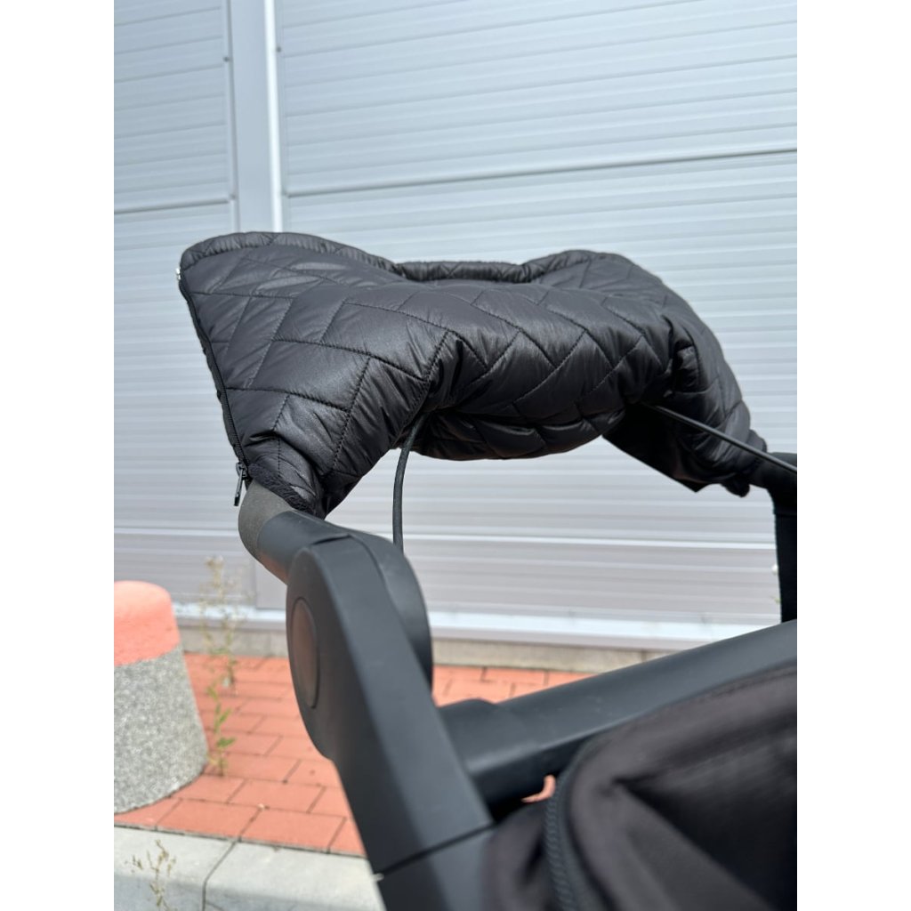 Mufka wykonana i dostosowana do rączki wózka Thule. Mufka posiada specialne rozcięcia z rzepami w miejscu hamulców. Mufka jest całkowicie zamknięta i hamulec można łatwo obsługiwać.