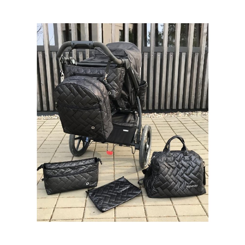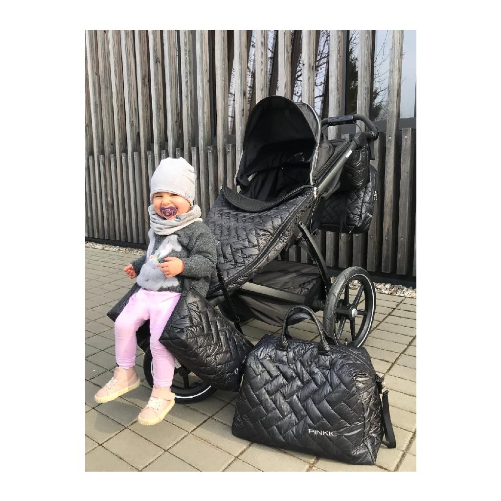 Torba przeznaczona nie tylko do wózka, ale można również nosić na wiele sposobów. Torba jest bardzo leciutka, uszyta z pikowanego materiału ze wzmocnionym dnem. Torba na zamek błyskawiczny, wewnątrz dwie mniejsze kieszenie + uchwyty z gumki na butelkę lub kubek