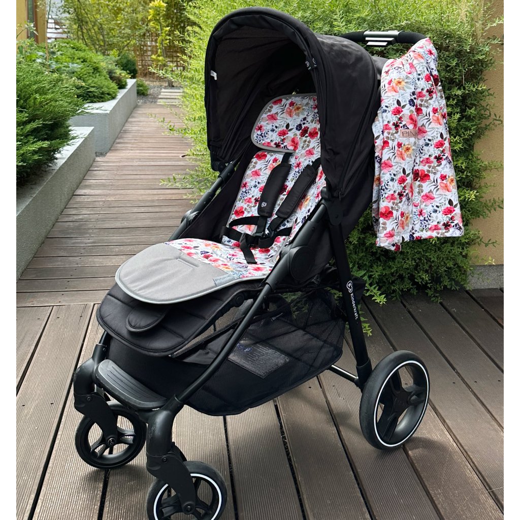 Oboustranná podložka do kočárku vyrobená v romantickém designu. Příjemný materiál.