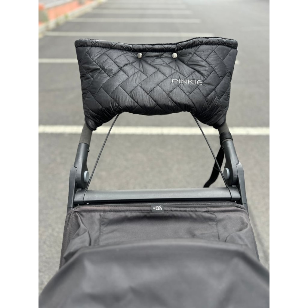 Rukávník vytvořený přímo na madlo Thule. Aby dobře seděl a nepřekážely mu lanka od brzdy, jsou vytvořené na rukávníku průstřihy, které se po připnutí na madlo zafixují suchým zipem. Rukávník je zcela uzavřen a s brzdou se dá dobře manipulovat.