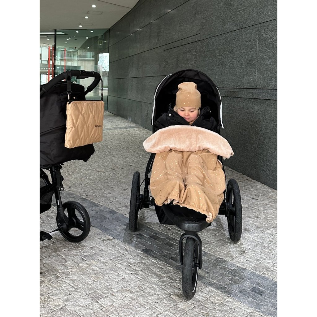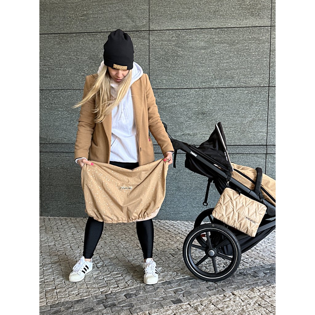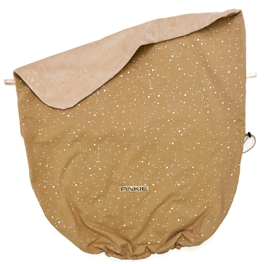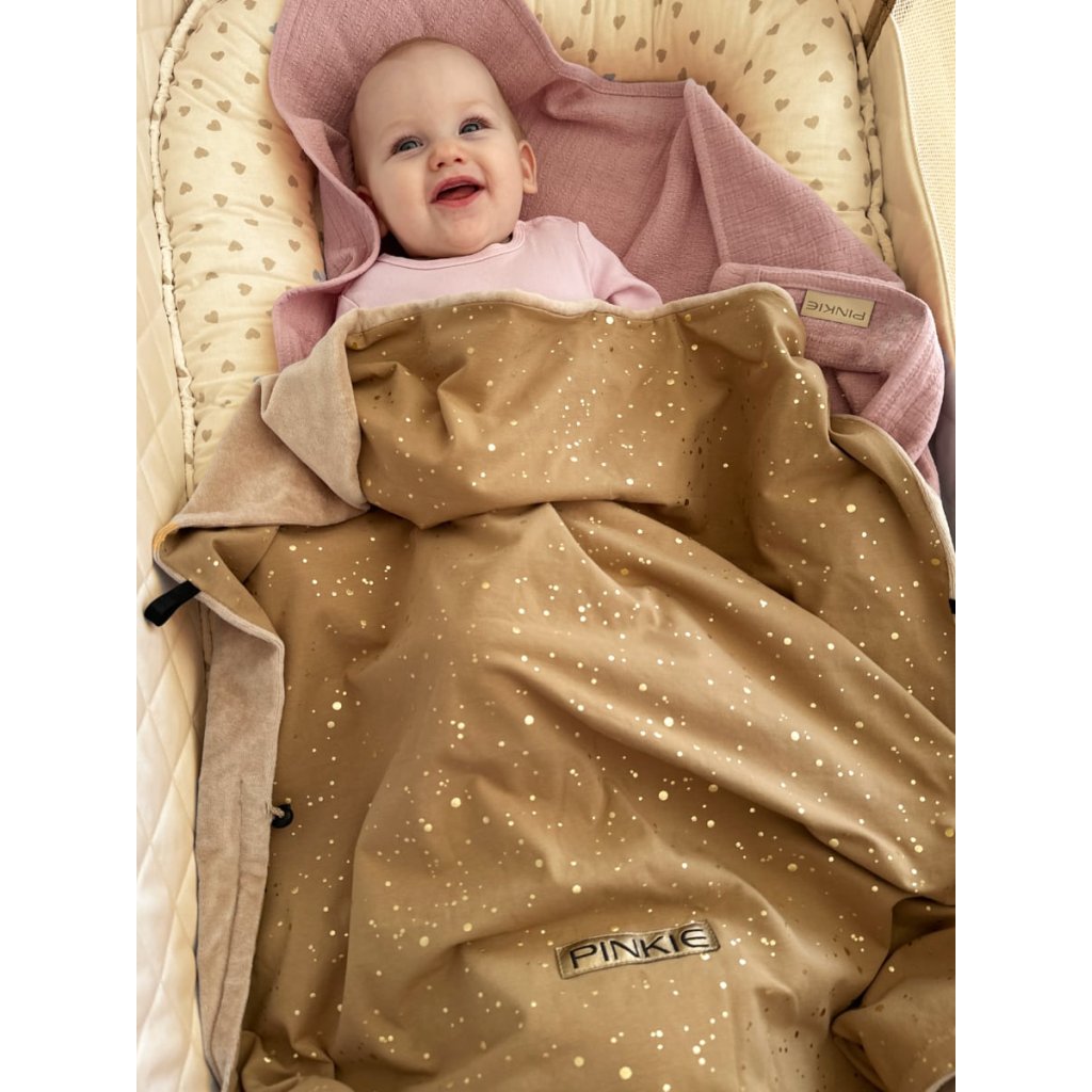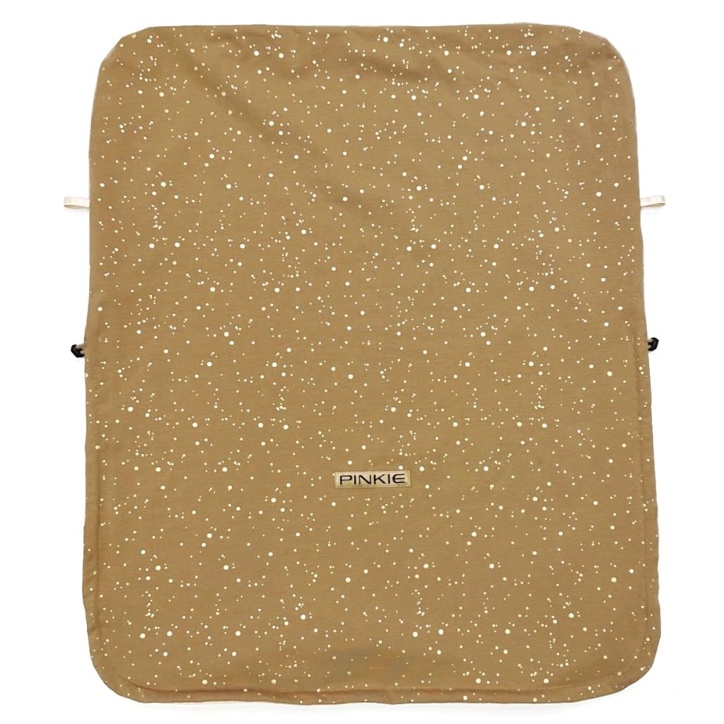 Deka ku kočíku, ktorú môžete v spodnej časti stiahnuť a tým ju použiť ako nánožník. Deka tým bude pri nožičkách dieťatka pekne držať.- Mäkký materiál - z jednej strany je použitý bavlnený úplet so zlatou potlačou az druhej bavlnený zamat