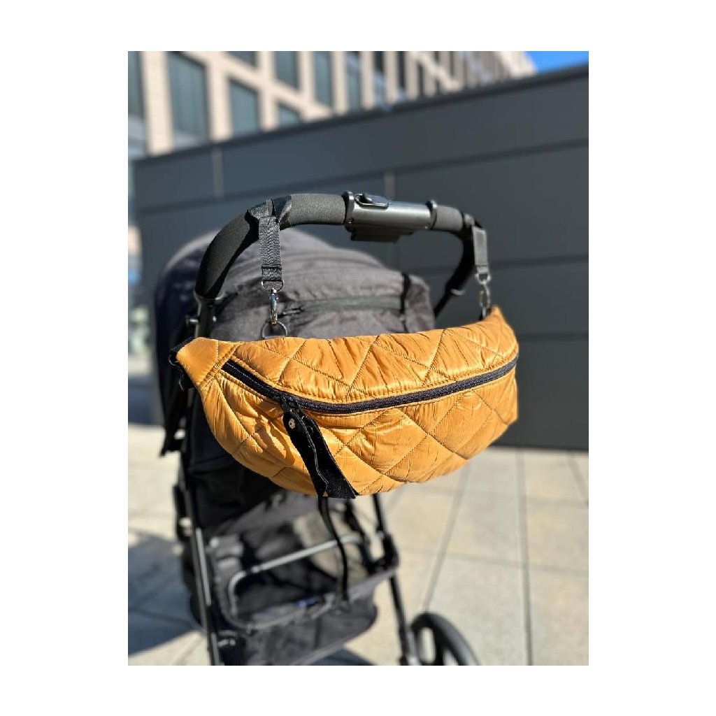 Štýlová ľadvinka s výrazným prešívaním, ktorú môžete upevniť na kočík. Všetky osobné veci máte pekne po ruke.