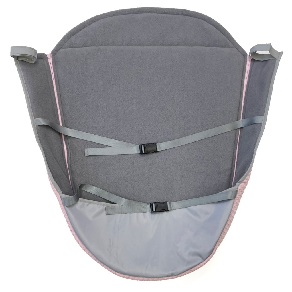 - přichycení nánožníku ke kočárku je řešeno popruhy a poutky ve třech úrovních, do kočárku tak nefouká